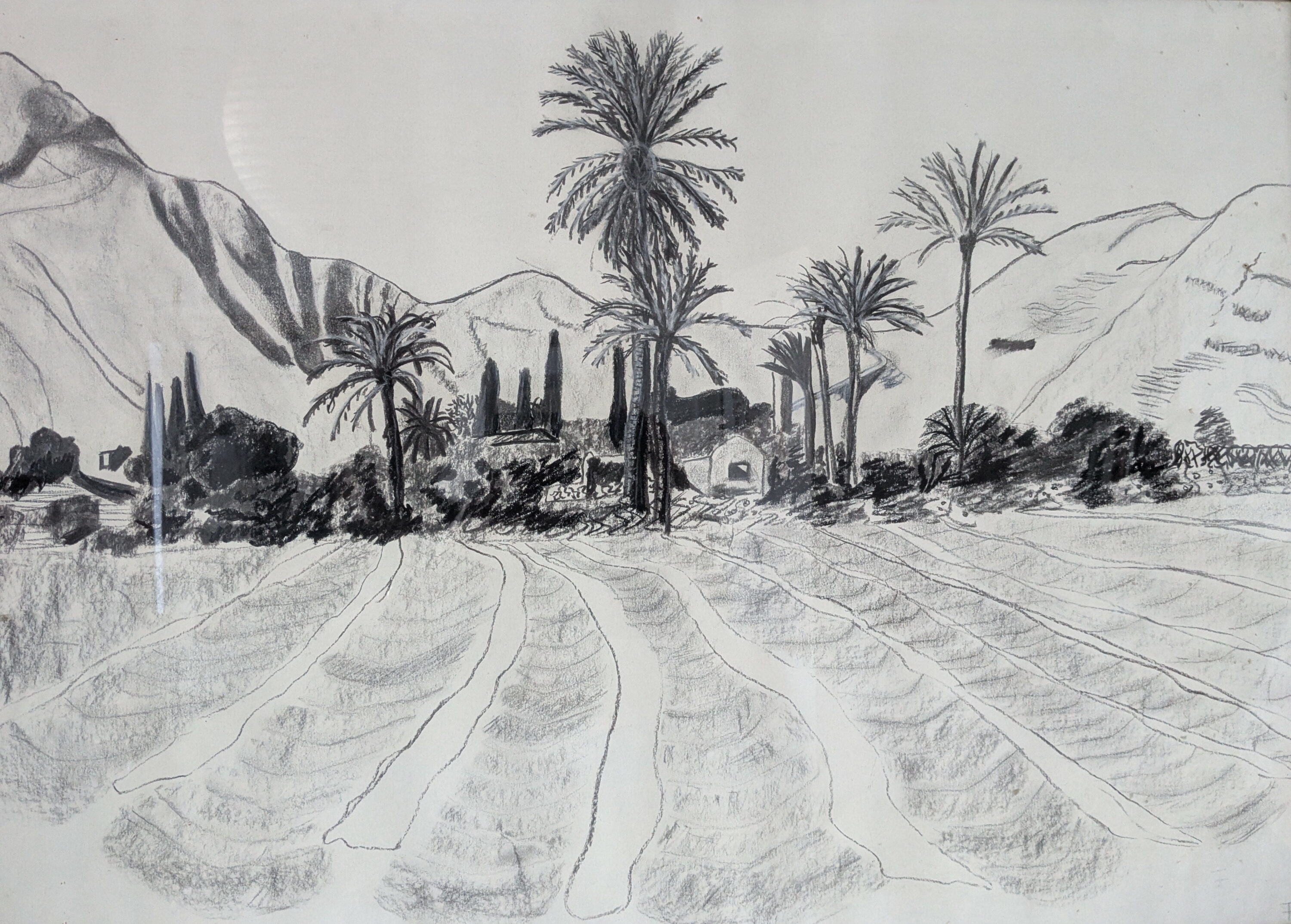 Garden near Jericho, West Bank, 1989, charcoal drawing